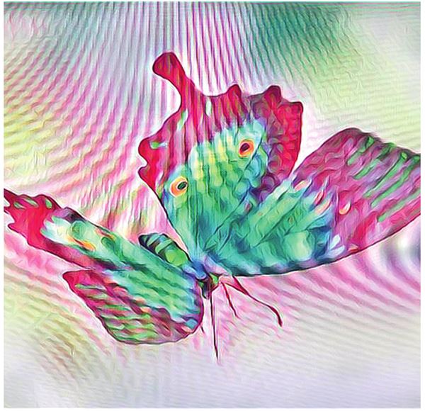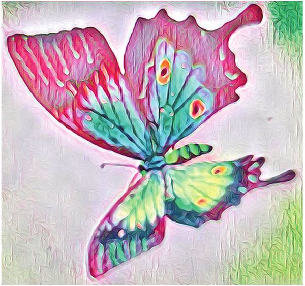 Бабочка была такой огромной, что казалась бы птичкой, если бы не свойственные только бабочкам крылья: яркие, тонкие и без перьев. Она примостилась на розовом кусте и замерла, только крылышки её вздрагивали легко, почти незаметно. Трудно было сказать, что было прекраснее: яркие свежие розы или она. Её крылья смахивали на перья павлина: перламутровые, зелёные с ярким, почти оранжевым кружком, переливающимся золотом на нижней части крыла.