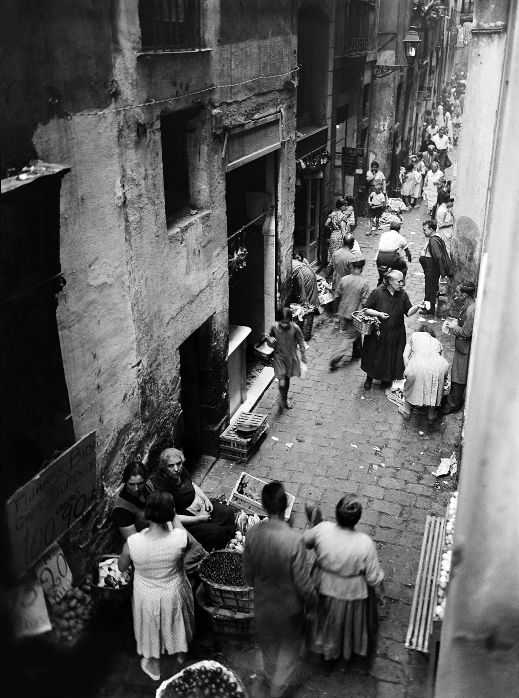 Hay unas bandejas con bacalao; con carne que no se sabe de qué animal es, metida en una salsa roja y unas hojas de laurel. Allí comen nuestros ladrones y las pobres familias que viven en las casas infectas de Santa Madrona. Se suceden las tabernas que presentan a la vista de los transeúntes y a la voracidad de las moscas y de los piojos el bacallà a la llauna, las mongetes cuites... En este trozo hay un principal, que no está declarado como una casa de dormir y en el cual se celebran misteriosos rendez-vous entre muchachos y viejos. Suelen ser los muchachos limpiabotas guapos, con el pelo negro y luciente, y los viejos, gentes absurdas que toman el sol por las mañanas en la plaza Real. Tras la persiana tirada, el vicio se presenta como una llaga...