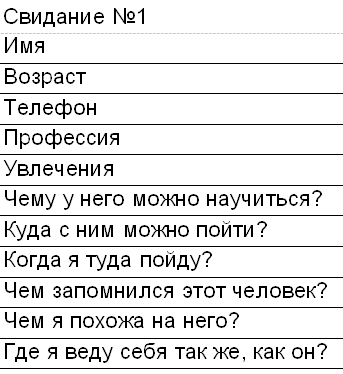 После каждого свидания заполняй анкету в своей тетради вот по этой форме.