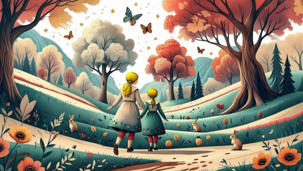 В прекрасной долине, где зелёные холмы плавно переходят в яркие цветущие луга, живут две сестрички Паулиша, Есенька и маленький братик Сарик. Эта долина – настоящее чудо природы: здесь растут высокие деревья с могущественно выступающими корнями и сладкими плодами. В воздухе летают яркие бабочки, словно живые цветы. Вокруг поют птицы, а на лужайках резвятся счастливые животные. Вода в ручьях там блестит, как чистейший хрусталь, а в воздухе витает запах свежей травы и цветущих растений.