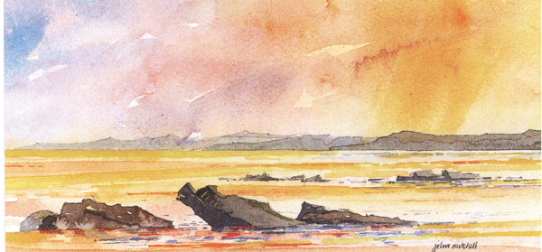 Some time later, back in the studio, I used my sketch as a reference to complete a successful watercolour painting that exactly portrayed my impression of what I had seen.