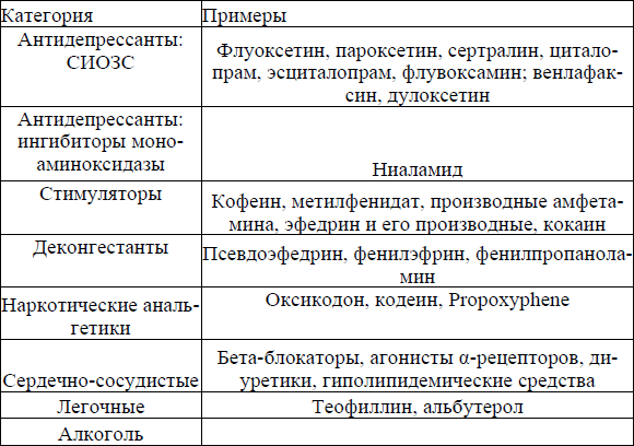 Средства, вызывающие бессонницу [Лиманкина И. Н., 2008]