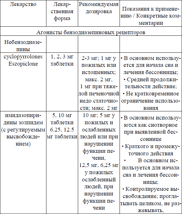 Основными ЛС для терапии инсомнии являются: