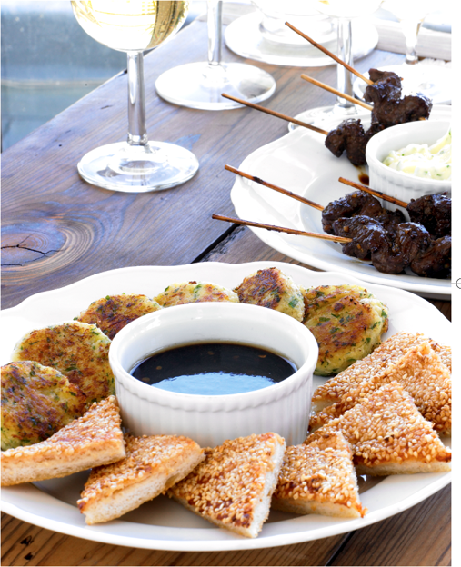 Arrange the sesame prawn toasts on warmed plates or on one large serving platter with small bowls of the dipping sauce to serve.