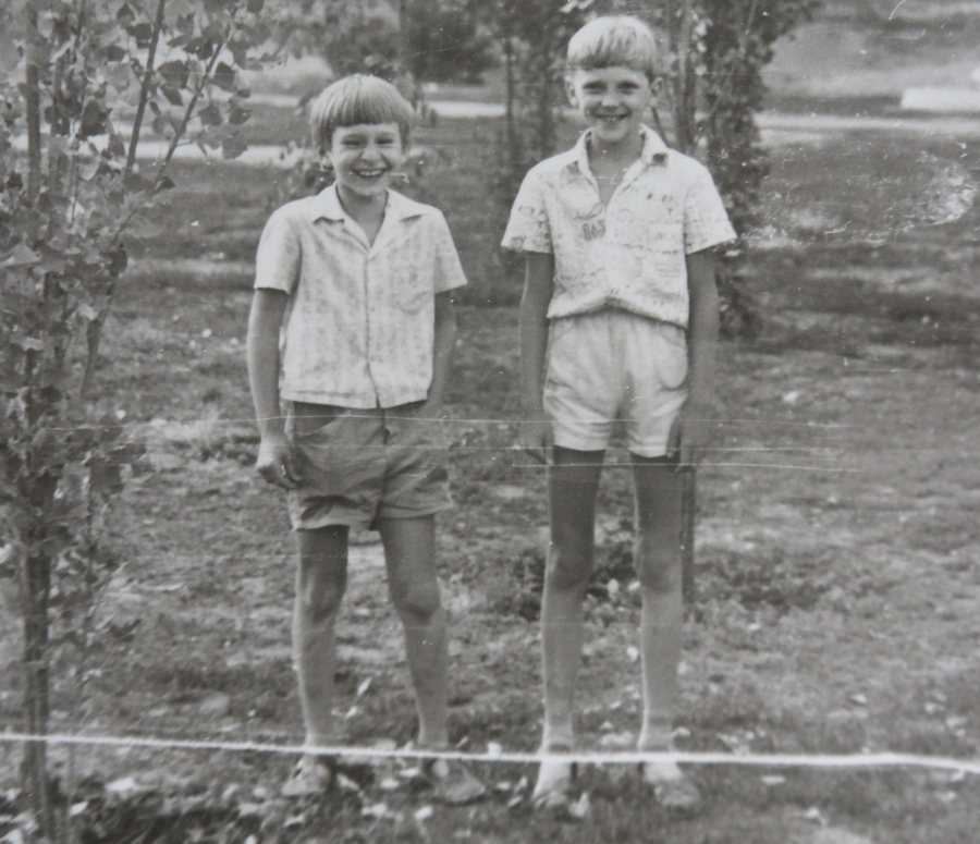 Вторым номером в программе (ну, помимо обязательного бабушкиного обеда или завтрака), был выход на улицу на разведку. А чаще всего это предварялось походом к моему закадычному другу Серёже Шакшуеву. Жил он в соседнем подъезде. И тоже на 9-м этаже. Подозреваю, что бабушка заранее оповещала его о моём предстоящем приезде, т.к. практически не было случая, чтобы я к нему пришёл в гости, а он меня не ждал, или отсутствовал (телефона ни у нас, ни у него не было). Надо сказать, бабушка моя, баба Дора, дружила с его бабушкой, бабой Клавой. Да и всю семью его я знал очень хорошо (но об этом позже). Серёжка был на полгода старше меня и на полголовы выше. Вот это мы, нам по 9 и 9,5 лет, лето 1979 года: