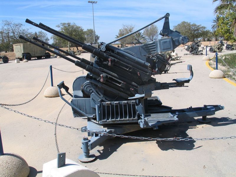 Их как раз, второго дня, как привезли и окопали по соседству, целую батарею. Тот же калибр, но уже четыре ствола, и 1800 выстрелов в минуту! Только успевай магазины втыкать! Так там и расчёт вдвое больше – аж 8 человек. Да-а-а… Адская машинка. Ну так с такой и дурак попадёт – там и целиться-то особо не требуется. Надо всего лишь нацелить стволы «просто в ту сторону» и дуй туда во все четыре дудки – авось куда-нибудь да попадёшь…