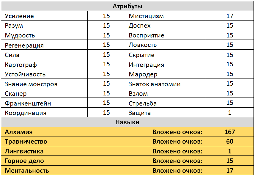 Для людей, не достигших 20-го уровня, повышение базового значения Атрибутов или Навыков выше 15 единиц невозможно…