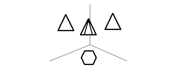 Если рассматривать изображение / проекцию тела / объекта на некоторой одной плоскости сбоку, с одной стороны (см. рис. 1), то мы можем, опираясь на прежний имеющийся у нас опыт, определить, что это треугольник.