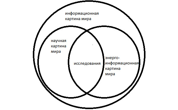 Для наглядности на рис. 5 показан общий подход к данным исследованиям Миров, где на фоне общей / единой Информации на стыке академично-научной и традиционной энергоинформационной Мировоззренческих платформ имеется общий результат наблюдений, полученный на основе определенного синергетического эффекта: