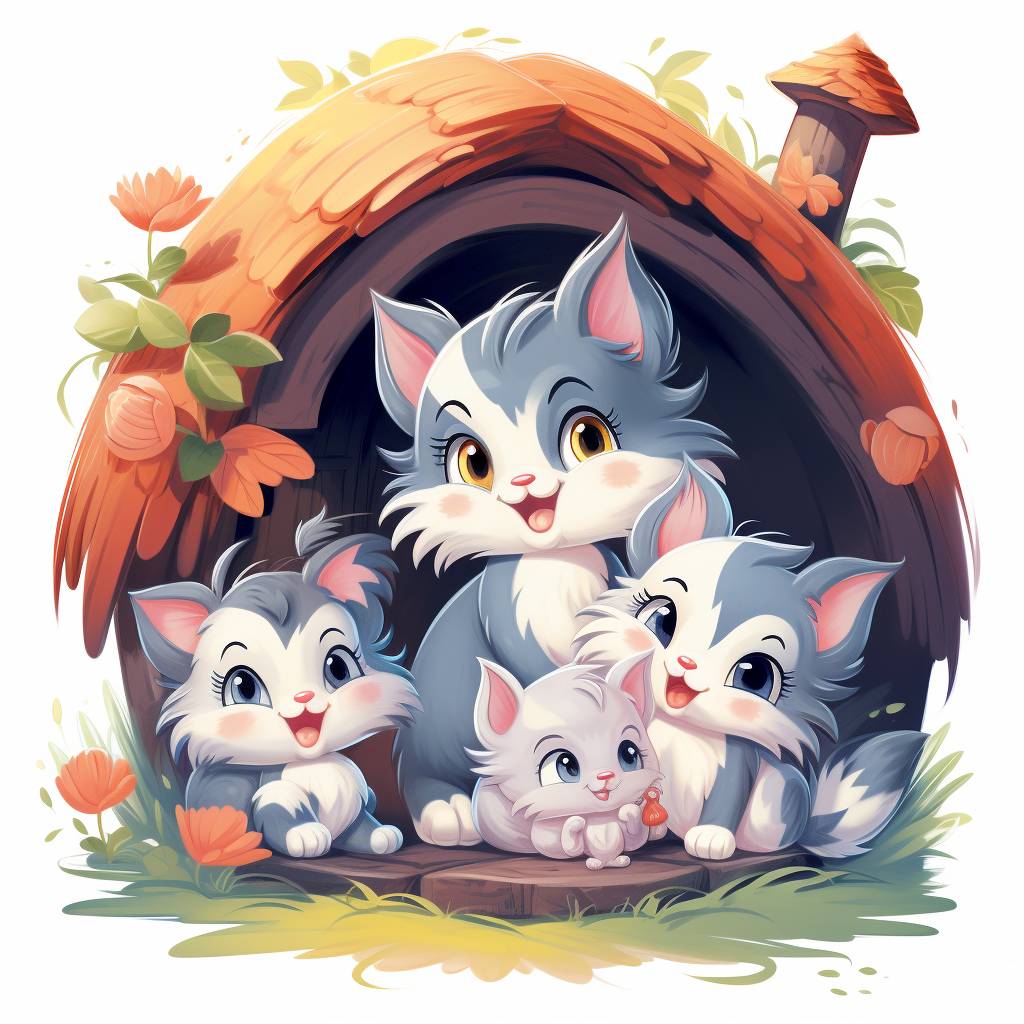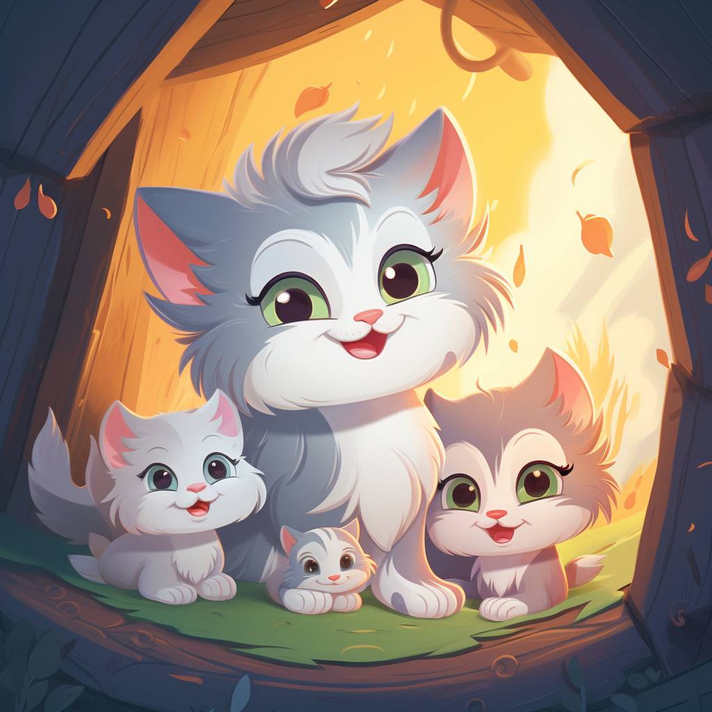 Мама-кошка обожала своих детей. Она заботилась о них, учила их всему, что нужно знать котятам, и всегда была рядом, когда им нужна была помощь.