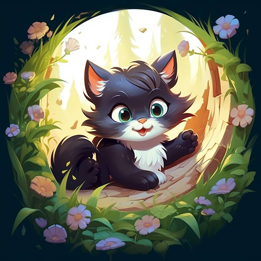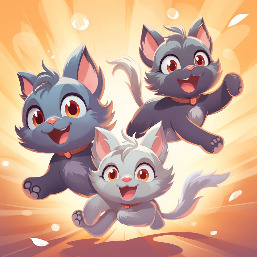 Котята неслись за мышкой, как вихрь. Снежок, самый быстрый, был впереди. Дымок мчался следом, ловко огибая препятствия. Пушок, самый маленький, замыкал тройку, но старался не отставать.