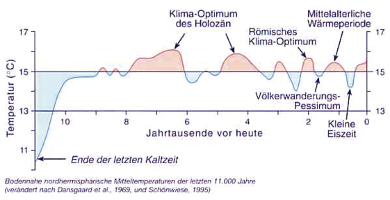 Abb. 8: Klimaschwankungen im Holozän (Das zyklische Auftreten von Optima und Pessima), im Wesentlichen der nördlichen Hemisphäre. (17)