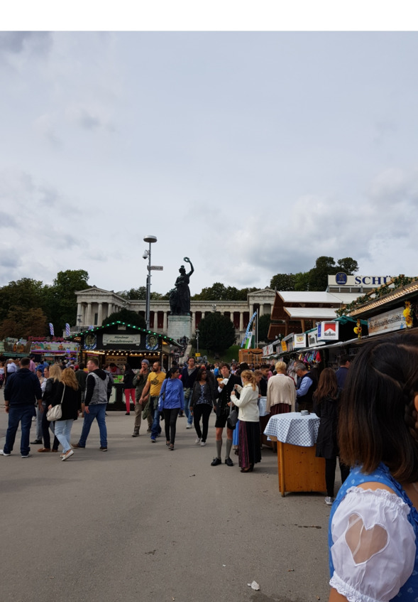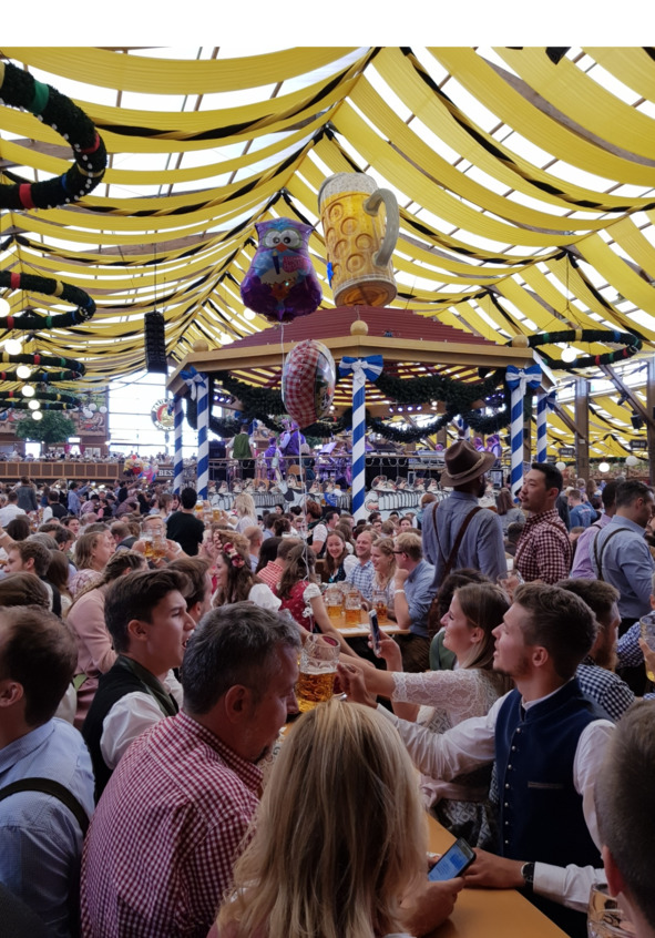 Сделали заказ – Мюнхенское оригинальное, светлое (объем традиционный – начали с литровых кружек), закуска и прочее тоже были, но помню не очень хорошо. Познакомились с соседями, представился, поднял тост за здоровье присутствующих, гады-немцы поддержали, тут же прилетела ответка – тост за Россию, и понеслось… После пары часов застолья разошедшиеся бюргеры начали танцевать, дамы под разудалую музыку оркестра, находящегося на втором ярусе, стали осваивать танцпол на скамейках, на которых сидели. Мы с Оксаной, уставшие после трех или четырех кружек пенистого напитка, воздержались от Па де де и Па де тур, но с энтузиазмом пели немецкие народные песни и отбивали такт под бравурные марши. Единение присутствующих возрастало, тосты шли от стола к столу, возвращались и повторялись. Десять тысяч присутствующих – в зюзю, без тормозов… Было очень весело! Когда фрау стали танцевать на столе, я, честно сказать, не заметил, это было так естественно…, хотя и впервые в моей жизни, по-видимому, сказалось мое неумение выпивать. Но господа пошли дальше своих спутниц и стали танцевать на перилах, отгораживающих одну зону от другой, выше были только балки, на которые пытались взобраться самые отчаянные и не самые трезвые Впечатления от первого дня Октоберфеста были полными, дожидаться финала мы не стали, а расплатившись, покинули павильон, полюбовались на статую «Бавария» и как-то добрались до отеля.