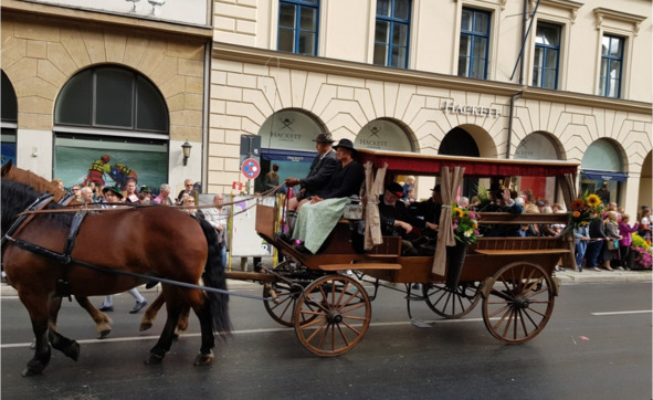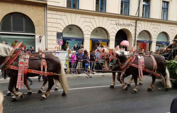 Воскресенье. Завтрак – «Смерть диете и похуданию». Метро. Центр. Прогулка до ресторана «Шпатен», встали на свое место, которое понравилось при посещении предыдущего Октоберфеста, три года тому уж минуло. И вот он – главная цель посещения нами праздника – парад. Это что-то с чем-то!!! Не буду рассказывать – пусть это сделают наши любительские фото.