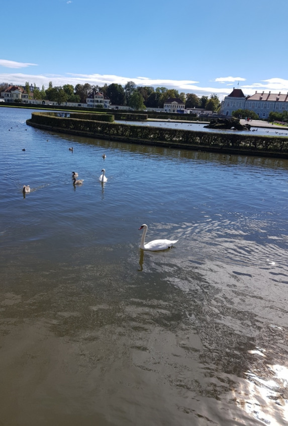 Понедельник. На метро до железнодорожного вокзала, в «Sixt», берем на прокат зарезервированный автомобиль, пока осваиваю БМВ, ездим по северным районам Мюнхена, затем мчимся к летней резиденции баварских королей – дворцовому комплексу Нимфенбург. В который раз нам повезло – сумели припарковать машину, втиснулись среди сонма немецкого автопрома и пошли смотреть садово-парковую красоту дворца, посещать в этот раз внутренние покои не стали (и видели, и времени мало, и денежек лишних нет). В Европе четыре потрясающих дворцовых ансамбля, построенных в одном стиле: Версаль, Петергоф, Сан-Суси, Нимфенбург. Были и не по разу во всех, так что свое мнение составили о каждом из них. Если Версаль – основоположник, то наш Петергоф – красивее и круче всех. Из немецких – предпочтение отдаем Нимфенбургу с его озерами, фонтанами, парками, скульптурами, ботаническим садом и охотничьим домом Амалиенбург – шедевром искусства рококо, очень нравится и часовня Магдаленкраузе, выстроенная под старину в виде грота, выложенная галькой и ракушечником. И хотя дворец Сан-Суси по отделке предпочтительнее Мюнхенской резиденции, но в Нимфенбурге есть Галерея красавиц. Напомню, что 36 работ художника Иозефа Штилера выполнены по заказу Людовика 1, натурщиц отбирал сам король, невзирая на статус и социальное положение дам. Портреты говорят нам о тонком вкусе первого лица. Правда, надо сказать, что есть портрет Лолы Монтес, испанской танцовщицы, дамы с пониженной социальной ответственностью, с которой у короля были интимные отношения. Из-за этой авантюристки король лишился престола, успев за два дня до отречения лишить ее баварского гражданства. Пострадал от нее Ференц Лист и другие персоны. Нам остается лишь сказать: «О времена! О нравы!». Вернемся же к нашей истории. В очередной раз оплошали – не взяли с собой ни хлеба, ни другой снеди, так что стаям водоплавающих: рыбам, уткам и лебедям достались лишь наши восторги и фотографирование. В оправдание – спешим очень, ведь маршрут и график вопиют. В общем, посетили, оборзели, тьфу ты – обозрели садово-парковый ансамбль Нимфенбурга, покидаем с мыслями о более обстоятельном посещении дворца когда-нибудь. Садимся в авто, едем в район Арабелла Парк, забираем вещи из отеля и в путь. Фото дворца – ниже.