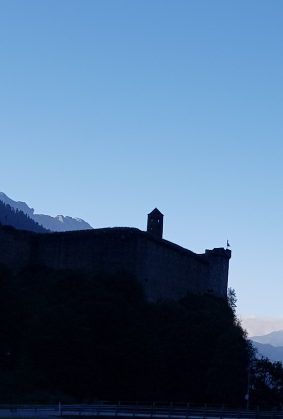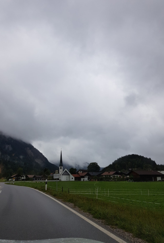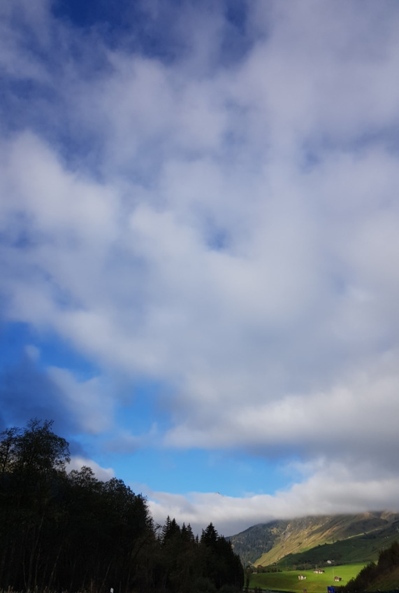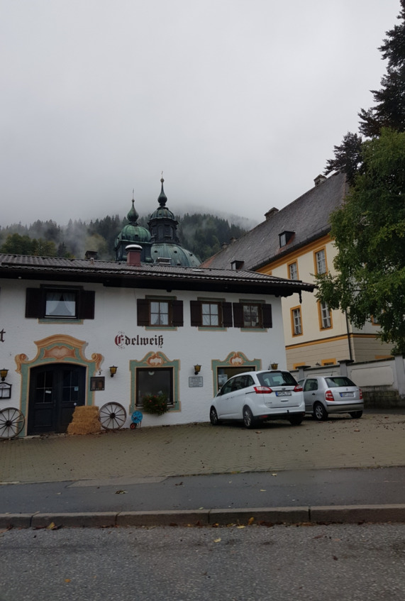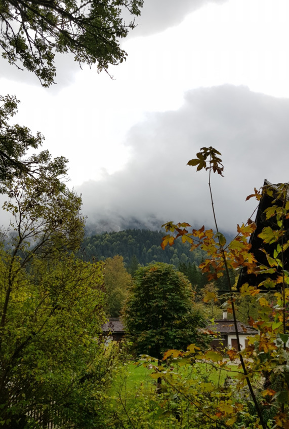 С глубоким воодушевлением рассмотрели архитектурные изюминки альпийского стиля, роспись стен, причудливость фасадов и крыш. Подняли взоры выше и… Обалдели! Такая красота! Туман спускается с альпийских гор, укутывает как пуховым одеялом ущелья и долины, легко скользит по склонам, скалам, все ниже и ниже к земле, все ближе и ближе к нам. Волшебство и сказка! Вот оно – природное чудо! На память приходят стихи замечательной поэтессы Светланы Гостюхиной: