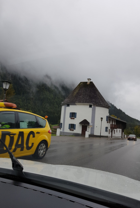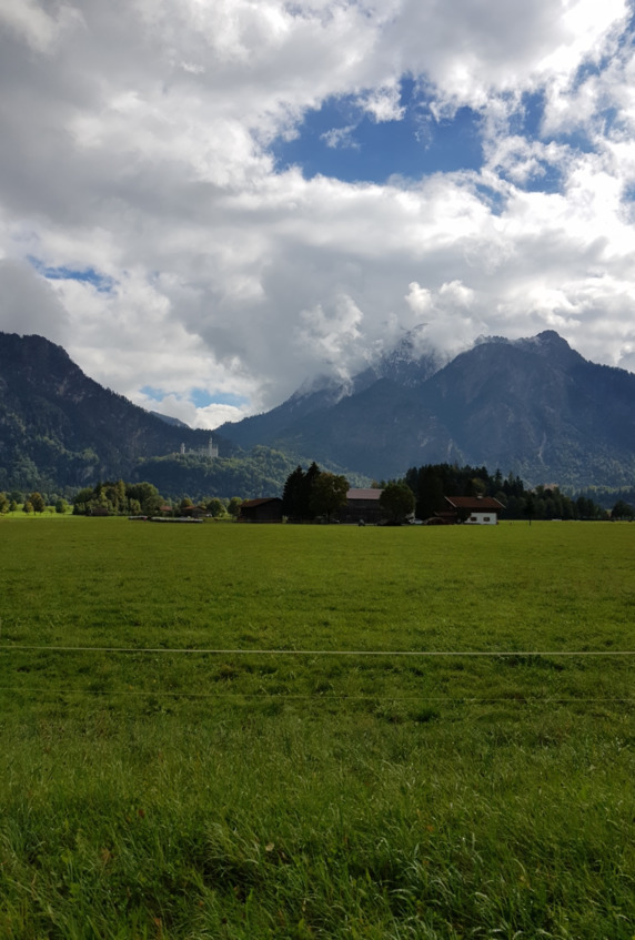 Впереди Боденское озеро, австрийский Брегенц, а по пути к нему хотим непременно посетить дворец Линдерхоф, спрятавшийся на склонах Альп в Гармиш – Партенкирхен. После трех солнечных дней в Мюнхене погода оставляет желать, набежали тучи, моросит мелкий дождь, и мы даже не догадываемся, что благодаря этому обстоятельству увидим такое чудо, ради которого стоит оказаться в это время, в этом месте. Но все по порядку. По мере приближения к Альпам погода ухудшается, как и видимость, все небо затянуто тучами. Дорога становится извилистой, начинают встречаться первые дома в горах.