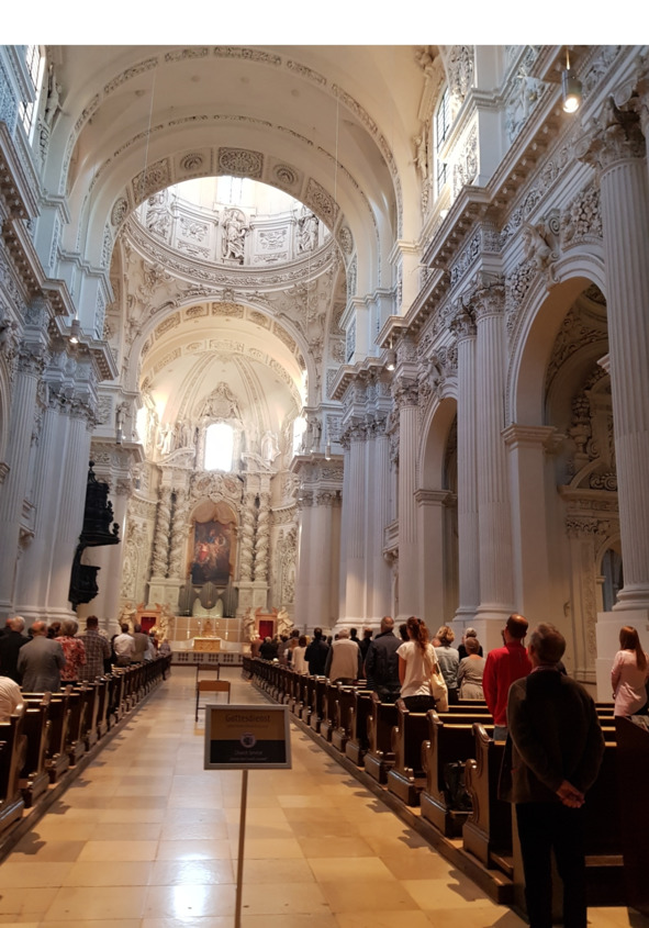 Эпоху Возрождения во всей красе представляет Питер Пауль Рубенс, 60 его работ в Пинакотеке – самая крупная коллекция в мире, превосходит экспозицию нашего Эрмитажа. Тем, кто, как и я, неравнодушен к пышной красоте «рубенсовских» женщин – непременно нужно здесь побывать. Произведения Ван Дейка, Рембрандта и наряду с ними – Дюрера, картины которого не поместили по хронологии среди работ немецких авторов, а по праву разместили среди великих и равных мировых творений (потрясающие полотна – «Автопортрет», «Четыре апостола»). Очень продуманно работают искусствоведы и организаторы музея, ведь если осмотр начать с работ больших мастеров, то немецкая живопись средних веков не привлекла бы того внимания большинства посетителей, которое они уделяют увиденному в первые минуты и часы осмотра. Да что за примерами ходить, в Третьяковской галерее мало кто после наслаждения полотнами Перова, Репина, Левитана заходит в залы современного искусства, за исключением профессионалов и критиков. (С моей точки зрения – и по делу!). Понимаем, что весь отпуск можно провести в мире прекрасной живописи, но планы и труба зовут. Идем через весь город до отеля, как же красив Мюнхен! Прошли, созерцая и любуясь, на одном дыхании за день 21километр и не заметили; а дома – хорошо, если проходим пешком пару – тройку километров. Поднимаемся в номер, затем на 23 этаж, в ресторан для членов клуба и, … шедевральные виды столицы Баварии (ну, и делаем то, о чем вы подумали…, то есть худеем…).