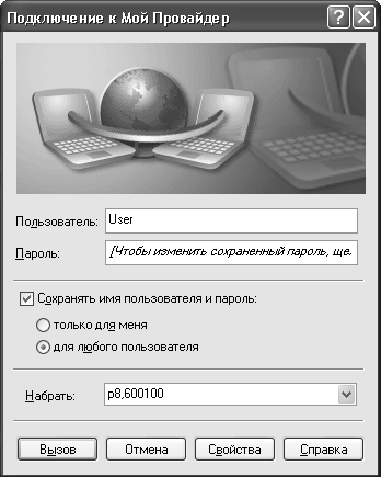Теперь можно осваивать Глобальную сеть. Чтобы подключиться к Интернету, следует выполнить команду меню Пуск → Панель управления → Сетевые подключения и выбрать требуемое подключение. Двойной щелчок кнопкой мыши на значке подключения на Рабочем столе приведет к тому же результату и откроет окно подключения (рис. 1.1).
