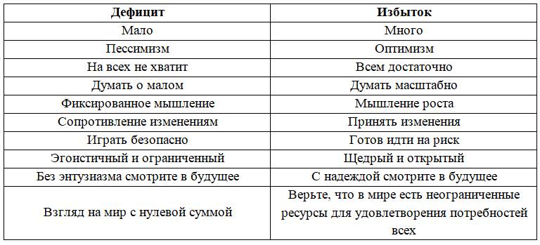 Изобилие против мышления дефицита