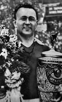 1937 г. Капитан команды «Динамо» (Москва) Сергей Ильин с Кубком СССР по футболу
