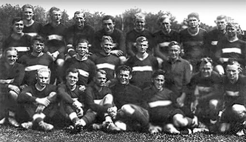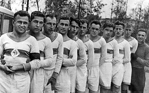 1938 г. Команда «Динамо» (Москва). Капитан команды С. Ильин (первый слева)