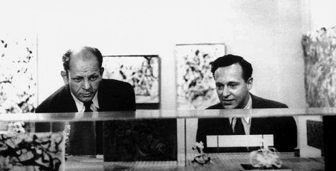 Ил. 1. Дж. Поллок и архитектор П. Блейк перед моделью «Музея Поллока» на выставке в галерее Бетти Парсонс. 1949. Photo: Ben Schultz. Reproduction photographique dans le cadre de la présentation des Collections Contemporaines, niveau 4, avril 2011. © Allan Kaprow Estate. Photo credits: Georges Meguerditchian – Centre Pompidou, MNAM-CCI/Dist. RMN-GP. Image reference: 4N51523