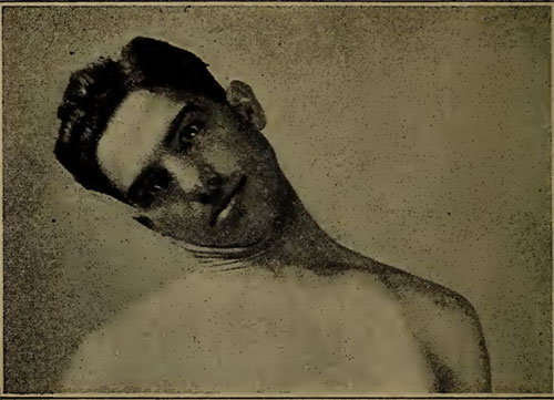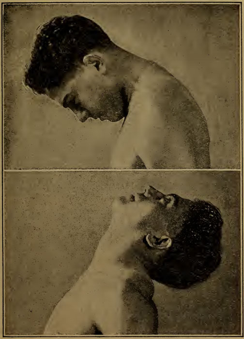 Упражнение для гибкости верхнего отдела позвоночника, бесполезное, если только не выполнять его очень тщательно. Сначала подайте голову далеко вперед, подбородок по возможности коснется груди, затем откиньте ее назад, глядя прямо вверх. Повторите это упражнения несколько раз или до легкого утомления.