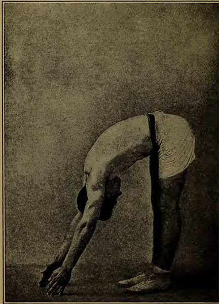 Основная идея этого упражнения заключается в том, чтобы заставить позвоночник отклоняться назад в правильное положение, наполняя грудную клетку воздухом и тем самым расширяя брюшную полость и в то же время растягивая ее. Для достижения этой последней цели наилучшим образом, тело должен падать на пол с максимально возможной скоростью, подтягивая колени к груди движением, несколько похожим на рывок. Падение вперед головы растягивает позвоночник до поясничной области (малая часть спины) и его эффект усиливается необычной полнотой грудной клетки и брюшной полости.