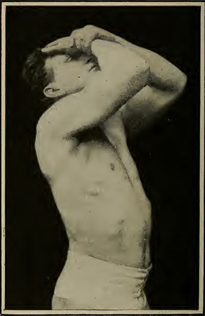 Хотя эти упражнения не были разработаны специально для коррекции искривления позвоночника, тем не менее, они будут иметь исключительную ценность во всех подобных случаях, или, по крайней мере, там, где нет радикальной механической деформации позвоночного столба. Искривления можно предотвратить во всех случаях или даже полностью уменьшены с помощью упражнений такого типа. Кстати, практика упражнений для оздоровления позвоночника и придания правильной прямой осанки имеет очень заметное влияние на грудную клетку. Выпрямленное положение позвоночника всегда означает расширение грудной клетки и появление большее пространство для свободной деятельности сердца и легких.