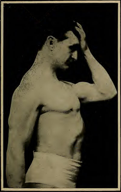 Соответственно, в связи с этими упражнениями следует помнить, что многие движения, способствующие развитию мышц шеи, также стимулируют деятельность щитовидной железы. Невозможно пройти через процесс подготовки к борцовскому матчу, в исключительной степени не стимулируя этот орган. Поэтому, следуя рекомендациям, которые приведенным в этой главе, вы обеспечите себе большую пользу от стимулирующего жизненную силу процесса, который обычно можно получить только пройдя длительный курс борьбы. Нет никакой необходимости развивать «бычью шею», но вы должны приложить максимум усилий, чтобы приобрести достаточное развитие задней части шеи, чтобы придать ей дугообразный вид. Чем ближе вы сможете приблизиться к развитию этого вида шеи, тем более жизнеспособным вы станете. И вместе с этой превосходной силой придет аналогичное улучшение всех остальных способностей, как умственных, так и физических.