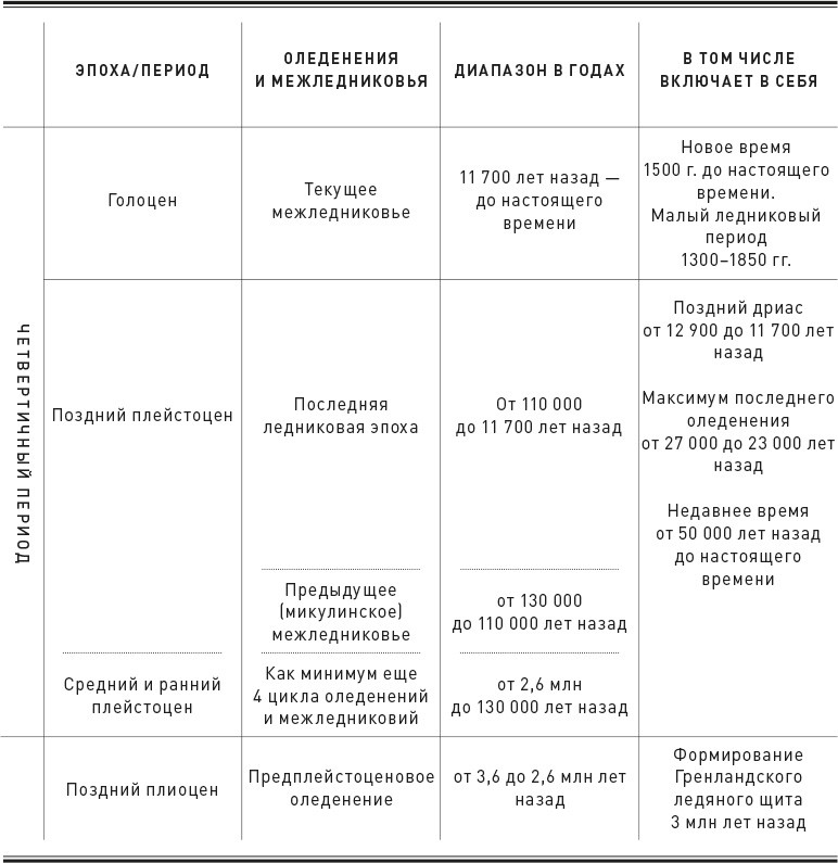 В любом обсуждении, касающемся палеонтологических тем, обязательно фигурирует время и временные периоды. Я попытался использовать как можно меньше научных терминов, но некоторые из них необходимы. В таблице 1 представлена упрощенная версия геохронологической шкалы, показывающая, как взаимосвязаны основные временные интервалы, упоминаемые в этой книге. Соответствующие определения можно найти в глоссарии.