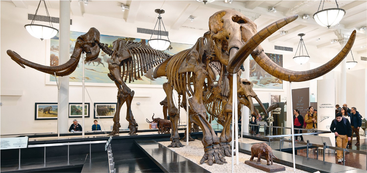 Американский музей естественной истории в Нью-Йорке известен во всем мире своими палеонтологическими залами с коллекцией позвоночных животных. История жизни позвоночных прослеживается там с момента их появления и почти до настоящего времени с помощью самых что ни на есть прямых доказательств – ископаемых находок. Посетители, естественно, хотят увидеть динозавров, но там представлено и много других вымерших животных, в том числе в крыле Лилы Ачисон Уоллес имеется экспозиция «Млекопитающие и их вымершие родственники». Как и в других залах с ископаемыми, здесь демонстрируются скелеты исчезнувших животных, поразительно многочисленные и разнообразные. Но особенность этих скелетов в том, что многие виды кажутся вполне знакомыми, и не только благодаря частому появлению в художественном и документальном кино и мультфильмах, но и потому что у них есть достаточно близкие, ныне живущие родственники. Они выглядят так, по крайней мере некоторые из них, как будто могли бы жить где-то на земле и сейчас. Мы собираемся остановиться тут на некоторое время, потому что в этих залах представлено именно то, о чем рассказывается в данной книге.