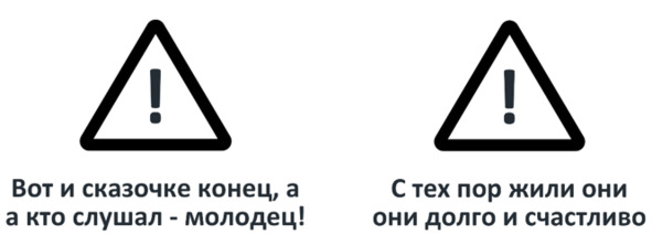 Приведём ещё одну иллюстрацию про схемы. Загляните на следующую страницу и быстро прочтите две фразы на рисунке, а затем вернитесь к чтению сюда. Есть такая история, что в начальной школе раздражённая учительница попросила знаменитого математика Гаусса и его одноклассников вычислить такую сумму: 1+2+3…+99+100. Она хотела занять детей чем-то, чтобы утихомирить их на время. Согласно этой истории, всего через полминуты Гаусс назвал ответ: 5050. Он разглядел шаблон: 1+100=101, 2+99=101…50+51=101 и понял, что ответом будет произведение 101х50. Умный мальчик и наглядный пример распознавания шаблонов, но на самом деле я просто хотел отвлечь вас и вашу память несколькими предложениями. Какие фразы вы прочитали на следующей странице? Может быть, «Вот и сказочке конец, а кто слушал – молодец» и «С тех пор жили они долго и счастливо»? Если вы помните именно это, то вы ошибаетесь. Ваши схемы отвлекли вас. Проверьте ещё раз внимательно. Прочтите каждое слово вслух и медленно, если нужно.