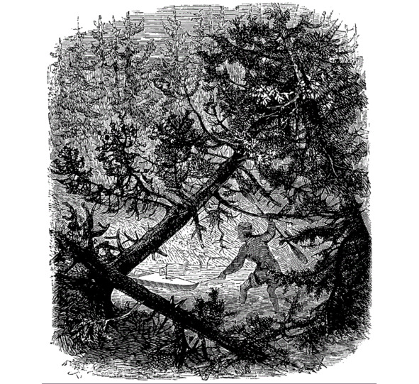 Мы пересекли еще несколько окруженных густыми лесами озер. Дома, люди и животные остались позади, два дня мы в полную силу гребли по реке, извивавшейся среди скал, зеленых мшистых берегов и зарослей. Течение было достаточно быстрым, чтобы можно было ловить рыбу и при этом неплохо двигаться вперед. Встретился только один серьезный порог (как здесь говорят, force) в Энтерадене. Человек пятьдесят собрались посмотреть, как мы его пройдем. Опыт заставил меня относиться к порогам осторожнее, чем в прошлогоднем путешествии. Я чувствовал, сколько было бы потеряно, если бы все путешествие прервалось из-за разбитой лодки.
