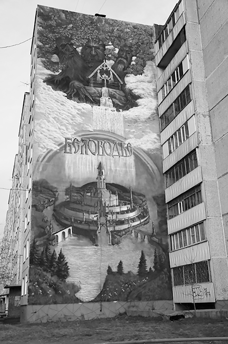 Одна из самых ярких работ, вдохновленных Беловодьем, – огромное, высотой в тридцать метров, граффити на стене многоэтажки в сибирском городе Омске. Оно принадлежит к серии произведений, прославляющих русскую жизнь и ее традиции. Полвека назад на той же стене красовался бы коммунистический лозунг, флаг с серпом и молотом или шагающая фигура Ленина; теперь же на ней изображена идиллическая потусторонняя сцена: на заднем плане над облаками высится дерево с тремя стволами в виде бородатых мужских лиц; чуть ниже – храм, водопад и радуга; на переднем плане – сияющий город на круглом острове посреди озера; а по центру старославянским шрифтом написано «Беловодье». Эту работу выполнили художники из местного сообщества «Астрея-Гарант Омск». Несомненно, жителям города приятно видеть такое изображение, когда они проходят мимо этого здания. Напротив, в западноевропейских и американских городах настенные росписи, зачастую даже технически совершенные, рассчитаны скорее на то, чтобы пугать и провоцировать, а не возвышать.
