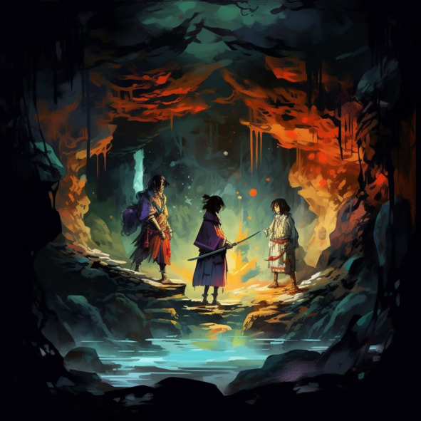 Ils pénétrèrent dans la grotte, se frayant un chemin à travers les passages étroits et les pièges sournois. Finalement, ils arrivèrent devant une salle immense, éclairée par une lueur magique. Au centre de la salle se trouvait l’artefact tant recherché, brillant de mille feux. Cependant, avant qu’ils ne puissent s’en emparer, une voix sinistre résonna dans la salle. C'était un sorcier maléfique, qui s’empara de l’artefact pour ses propres desseins malveillants. Il invoqua des créatures sombres pour attaquer Hiro, Yumi et Takeshi.