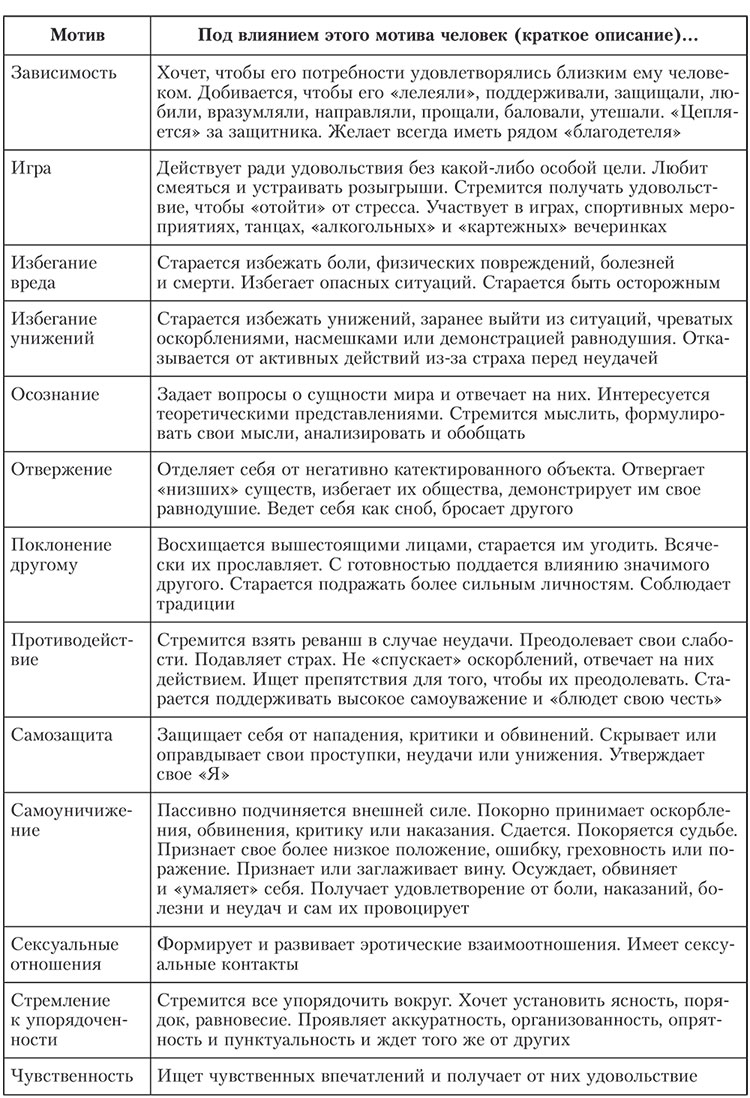 Таблица 2.3 Иллюстративный список мотивов по Мюррею (Hall & Lindzey, 1957, after Murray, 1938)