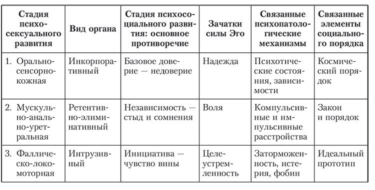 Характеристики стадий психосексуального развития (по Erikson, 1964)