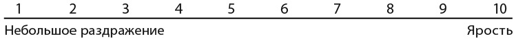 На шкале от одного (небольшое раздражение) до десяти (ярость) отметьте наиболее частую степень гнева.