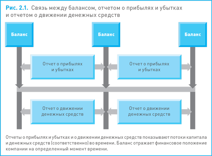 Это различие иллюстрирует рис. 2.1. Комплект форм отчетности – отчет о прибылях и убытках, отчет о движении денежных средств и баланс – нередко называют итоговой отчетностью.