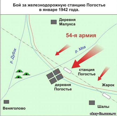 Ленинградский фронт. После удачной оборонительной операции под Москвой советским командованием было принято решение освободить дорогу на Ленинград. Наступать с двух направлений, кольцо замкнуть в районе н.п. Любань: Любанская наступательная операция.