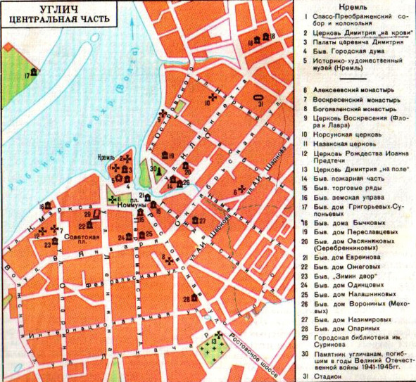– Нет. Я же не случайно перелистывал энциклопедию «Города России». Здесь приводится довольно подробный план исторической части Углича. И что характерно, оказывается, царская семья – то есть царица Мария Нагая с сыном и братьями проживала в палатах, расположенных на полуострове.