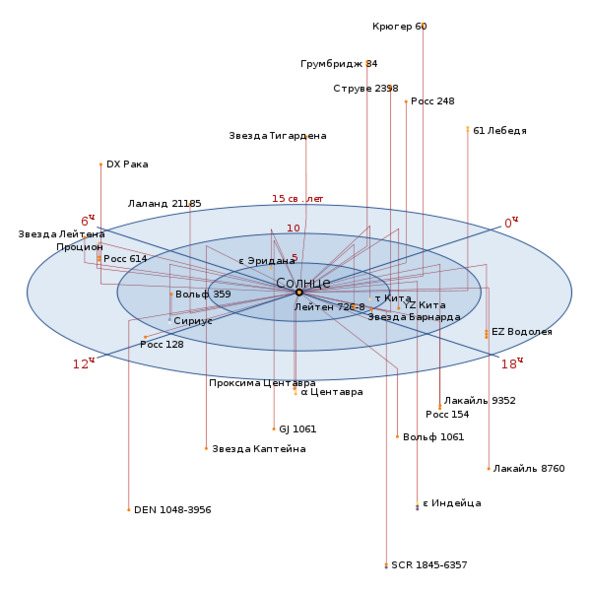 Схема расположения ближайших звезд
