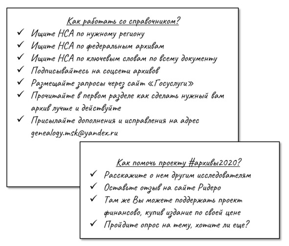 Также следите за анонсами проекта «Альманах Генэкспо» (https://genexpo.pro/) в социальных сетях. В этой серии будет издано несколько тематических справочников и Вы можете стать соавтором. В 2021 году выйдет альманах по военному поиску, в 2022 по региональным архивам.