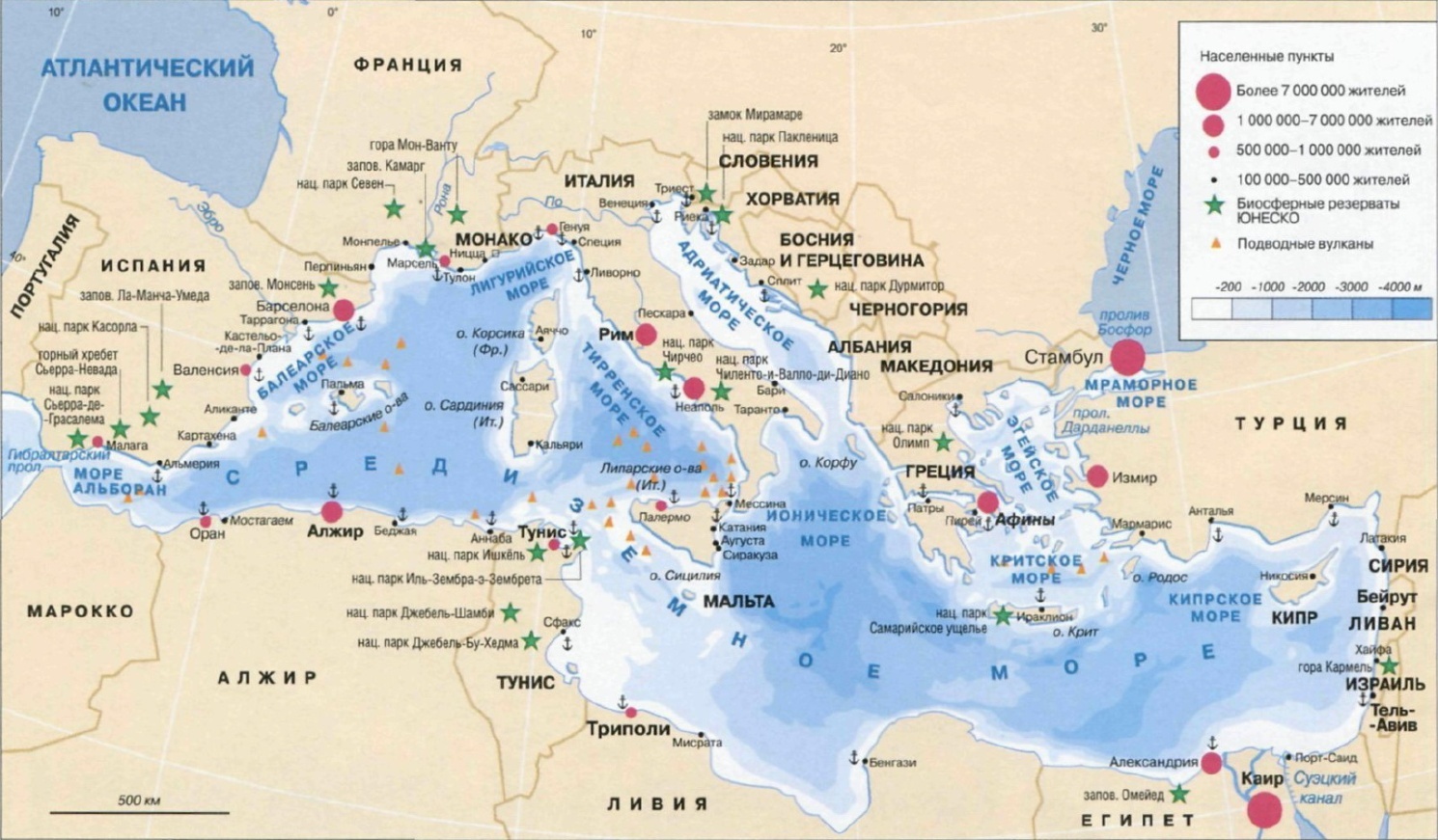 Карта Средиземного моря.