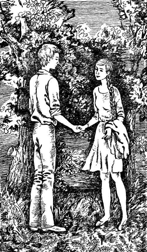 Они взялись за руки и спустились вниз, к речке. И, не размыкая рук, перешли друг за другом на противоположный берег.
