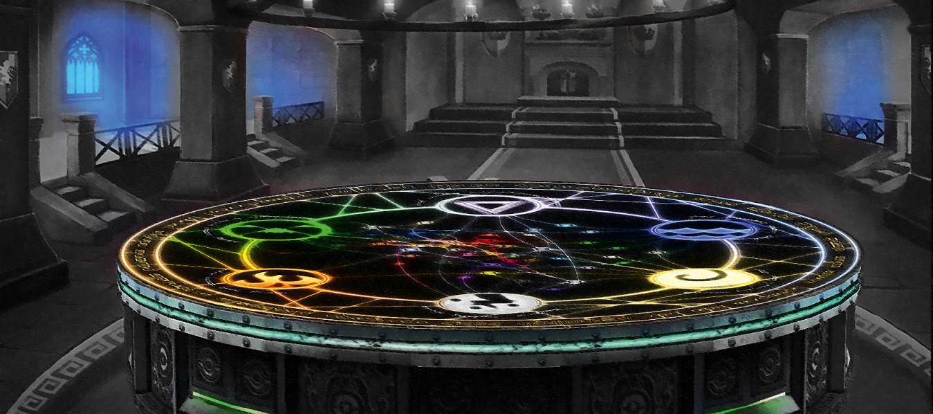 Лифт стремительно рванул вверх, пролетая незримые этажи. На самой вершине башни, в сферической комнате, возвышался огромный круглый стол. Его поверхность была поделена на шесть секторов, три из которых уже были заняты магами. Каждый сектор соответствовал определенной стихии. Маги были также одеты в тон своему сектору. Парень в зеленой мантии олицетворял стихии живой природы. Одежда искрящихся голубых тонов другого Мага – отражала энергию воздуха и электричества. Его сектор стола был испещрен изображениями молний. Третий из присутствующих чародеев был в сине-белом – ему подчинялись вода и лед.