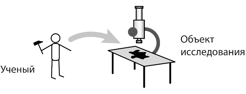 Для начала давайте еще раз бросим беглый взгляд на привычные всем нам субъект-объектные отношения, при которых ученый редуцирует сложнейший мир живых сущностей, явлений и предметов до состояния объекта исследования, говоря: «Вот я – субъект науки, а вот изучаемый мной объект. Я обладаю сознанием и могу воздействовать на объект входе моих изысканий. Но объект – не может воздействовать на меня, ему дозволяется лишь реагировать на мои воздействия, изменяя или сохраняя при этом какие-то свои свойства и параметры. Я и объект – это разное. Я нахожусь у микроскопа и смотрю в него, а объект лежит на предметном стеклышке, и я его изучаю. Между нами есть невидимая граница, после которой кончаюсь я, и начинается объект, или наоборот, кончается объект, и начинаюсь я».
