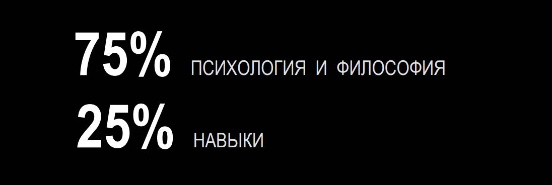 Безусловно, важно отметить, что Кас Д’амато делил задачу выстраивания эталонного Чемпиона на два этапа, где 75% решения задачи составляла психологическая часть. Вы должны понимать, что такая дословная формулировка требует поправки в связи с огрехами английского перевода, поскольку под психологией Кас понимает одновременно и психологию, и философию. Американцы, как выяснилось, редко задаются вопросами отличия психологии и философии. В частности, в Нью-Йорке, при работе над книгой, нам пришлось остановиться на двадцать минут и разобраться, что такое «философия» как явление и чем она отличается от «психологии». Потому уточним: когда мы в пропорции говорим 75% – здесь подразумевается и психология, и философия единовременно, а 25% отведено навыкам.